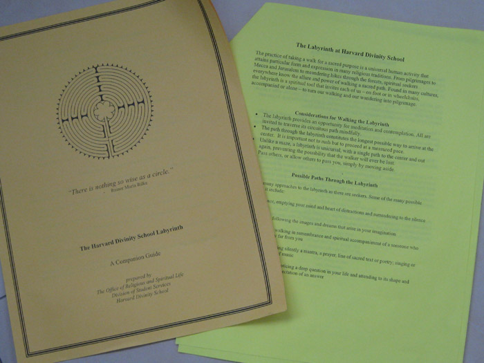 Harvard Divinity School printed pamphlet introduces the labyrinth we supplied all the stones.